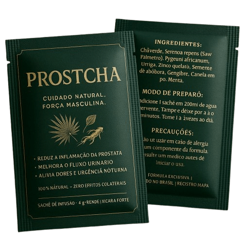 os ativos presentes no Prostcha ajudam a reduzir até 93% da inflamação prostática em até 30 dias — sem contraindicações relatadas.